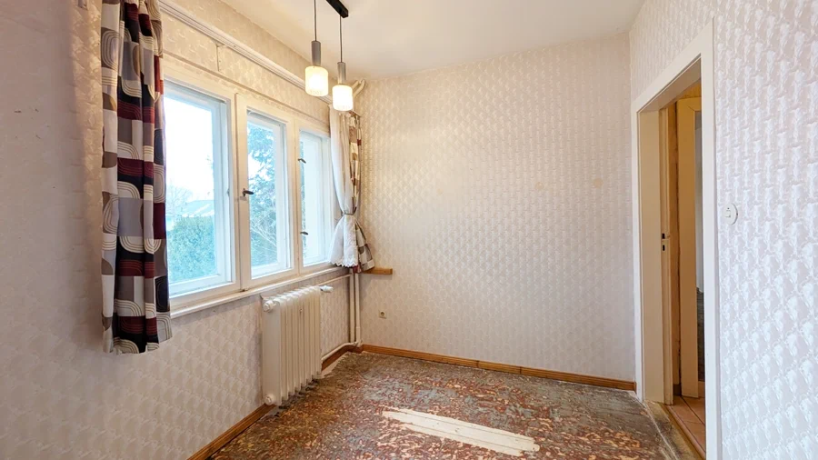 Stellen Sie sich vor: ein Zuhause mit Geschichte, ein großzügiger Garten und viel Raum für Ihre Ideen. Dieses Einfamilienhaus aus dem Jahr 1937 bietet auf ca. 105 m² Wohnfläche vier helle Zimmer sowie zwei halbe Zimmer. Originale Dielenböden verleihen den Räumen eine warme Ausstrahlung und unterstreichen den besonderen Charakter des Hauses. Ein Haus, das auf Ihre persönliche Note wartet. Die Terrasse und das ca. 838 m² große Grundstück laden zu entspannten Stunden im Grünen ein, während die eingefriedete Lage Ihnen Privatsphäre und Ruhe garantiert. Keller und zusätzliche Nutzflächen schaffen Stauraum und Raum für individuelle Projekte. Ein Zuhause, das Ruhe, Freiheit und Gestaltungsspielraum vereint . Ideal für alle, die ein einzigartiges Haus nach ihren Vorstellungen gestalten möchten.