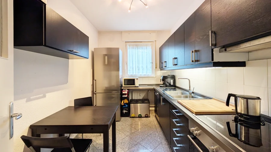 Diese geräumige Vier-Zimmer-Maisonette-Wohnung erstreckt sich über das Erdgeschoss und das erste Obergeschoss eines gepflegten Mehrfamilienhauses. Mit einer Wohnfläche von 112 m² bietet die Wohnung viel Platz für eine Familie oder ein Paar, das sich ein großzügiges Zuhause wünscht. Die hellen Räume und die südliche Ausrichtung der Balkone sorgen für eine freundliche Atmosphäre. Das Badezimmer mit Dusche und Badewanne sowie das separate Gäste-WC lassen keine Wünsche offen. Das Erdgeschoss überzeugt durch einen hellen Wohn- und Essbereich mit direktem Zugang zum ersten Balkon, der ideal für entspannte Stunden im Freien ist. Ein komfortables Schlafzimmer liegt links neben dem Wohnzimmer. Durch einen Flur vom Wohnbereich getrennt befindet sich eine modern ausgestattete Einbauküche. Direkt neben der Küche befindet sich das Tageslicht-Gäste-WC, praktisch für Besucher oder die tägliche Nutzung. Vom zentralen Flur aus sind alle Räume im Erdgeschoss erreichbar. Eine Treppe führt von hier aus ins Obergeschoss, wo sich zwei geräumige Schlafzimmer befinden. Das hell geflieste Tageslichtbad bietet sowohl eine Badewanne für entspannende Bäder als auch eine Dusche für den schnellen Start in den Tag. Ein weiteres Highlight ist der zweite Balkon, der vom einem der Schlafzimmer aus zugänglich ist und für sonnige Stunden sorgt.